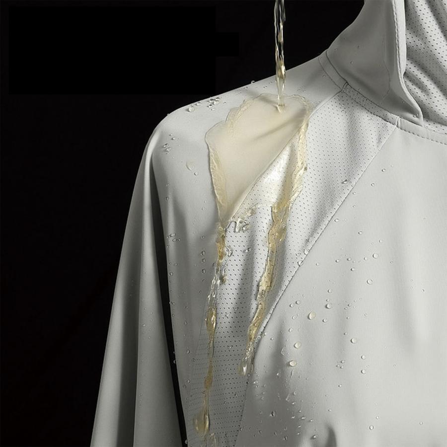 冷感素材を使用し、一般的な蒸し暑いポリエステル生地とは異なる、通気性と速乾性に優れた特別な織り技術を採用。