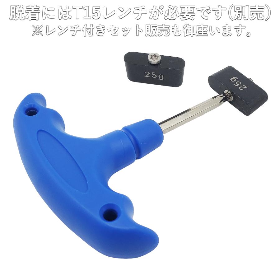 互換ウェイトの場合、ネジ締めした場合、純正品のようにガチっという音がしない場合があります。強く締めすぎると破損の恐れがありますのでレンチの締め具合で調整お願い申し上げます。