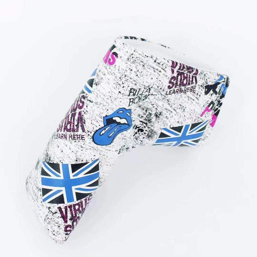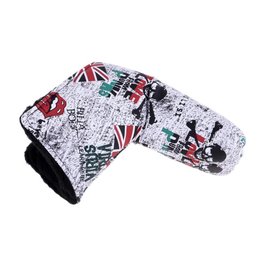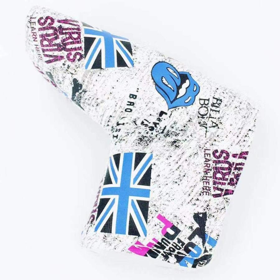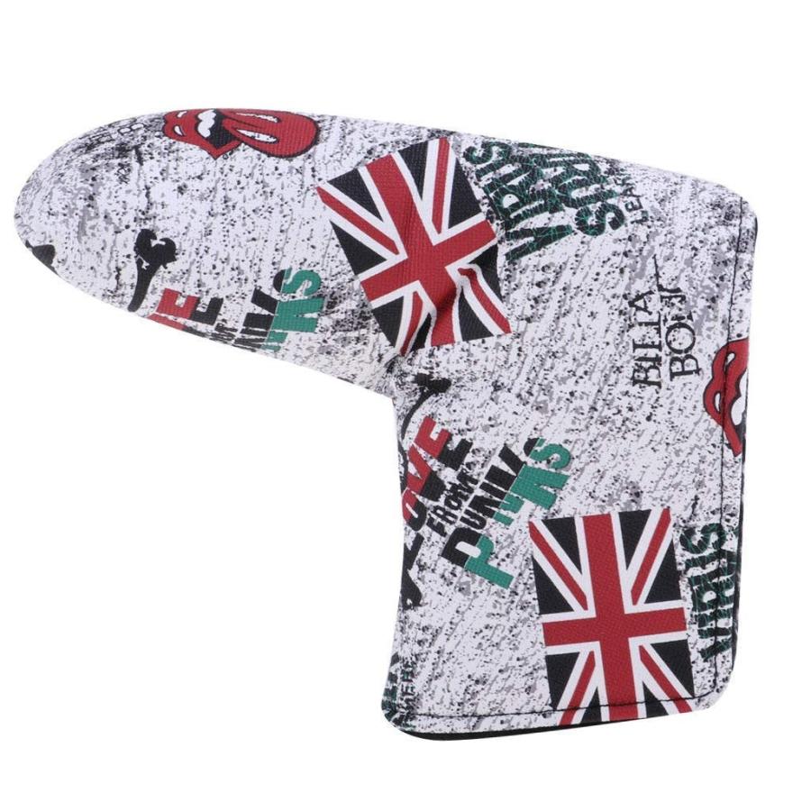 ゴルフ ヘッドカバー パターカバー マジックテープ開閉式 England国旗 ホワイト 高級pu革