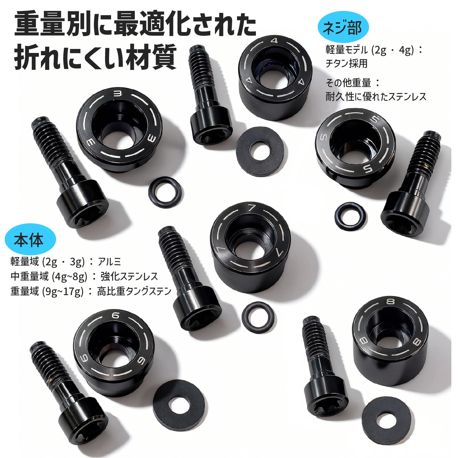 ネジ材質:2g4gはチタン、他のグラムはステンレス