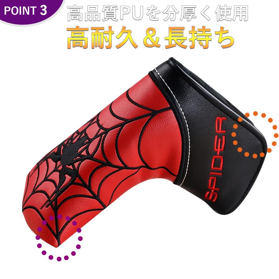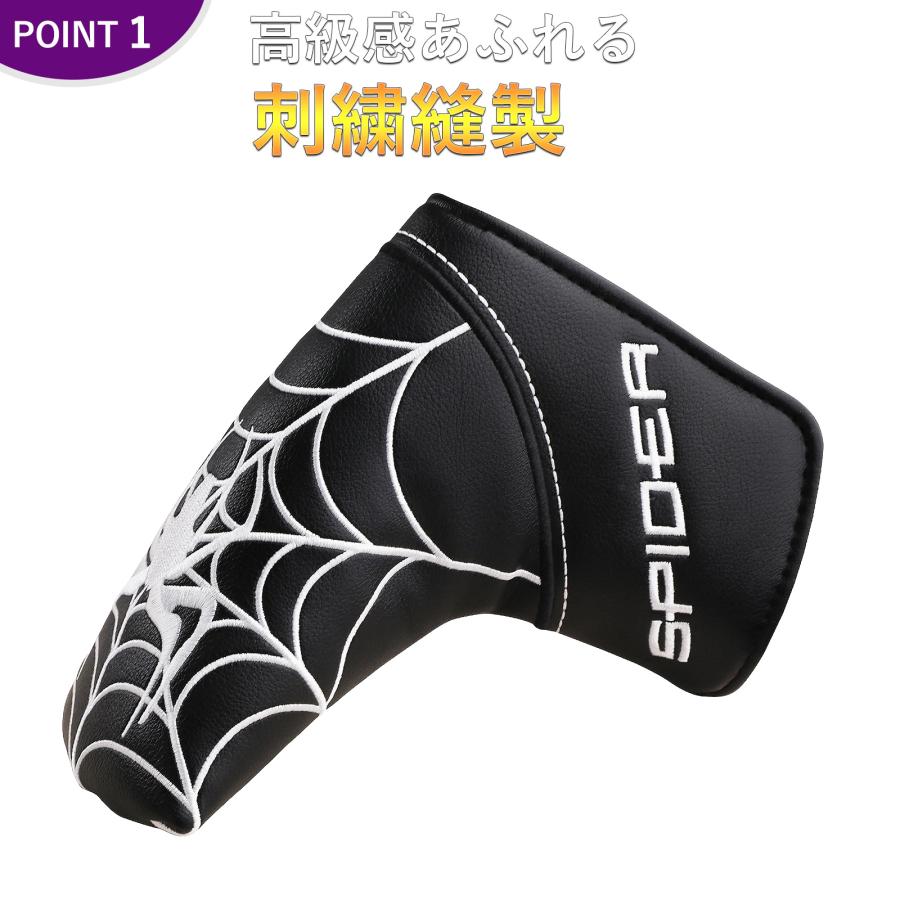 ゴルフ ヘッドカバー 新デザイン パターカバー スコッティーキャメロン オデッセイに適合 マグネット開閉式 ピンタイプ Spider 刺繍 4色