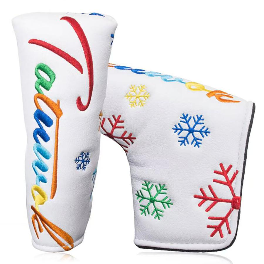 ゴルフ ヘッドカバー 新デザイン パターカバー スコッティーキャメロン オデッセイに適合 マグネット開閉式 ピンタイプ 用 マレット 雪 花 刺繍